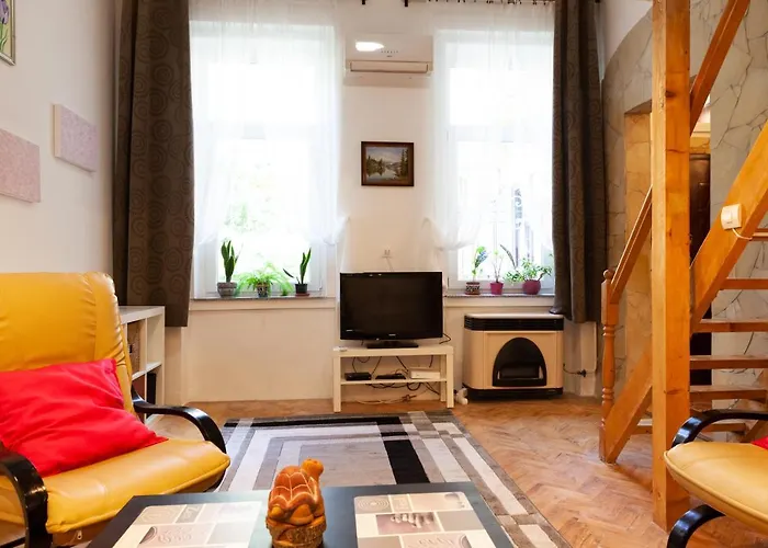 A Madách Színház csaknem egy 25 perces sétára helyezkedik el a 31 m²-es Happy Turtle Apartments Budapest területétől, ami egy remek választás, ha Budapest központjában szeretne megszállni. Az 1 hálószobás apartman a VII. körzetben teraszt és udvarra néző kilátást kínál.